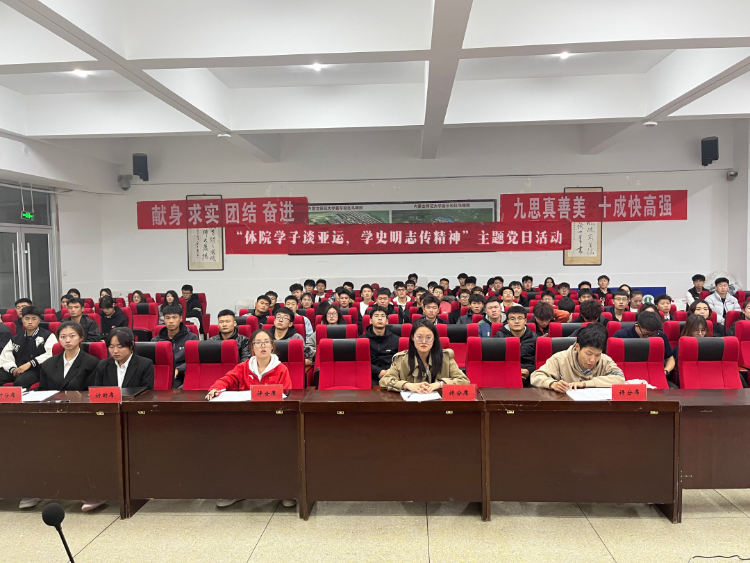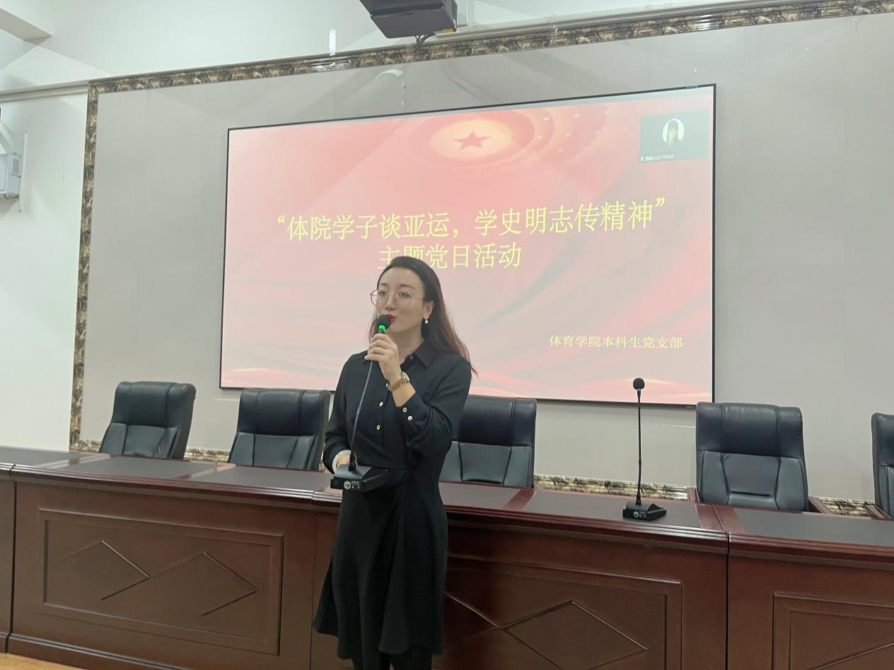 亚运精神承载着团结,友谊和进步的理念,它教会我们团结友爱,追求进步,超越竞争。作为新时代青年、作为中坚力量的入党积极分子,要坚持胸怀天下,树立全球视野,让爱国主义成为青春底色,让亚运精神薪火相传。乐鱼手机网页版登录入口本科生党支部紧密结合时事及学院特点,于2023年10月29日举办了“体育学子谈亚运,学史明志传精神”主题党日活动,让积极分子在谈亚运的过程中了解亚运会相关知识,激发学生的爱国情怀。