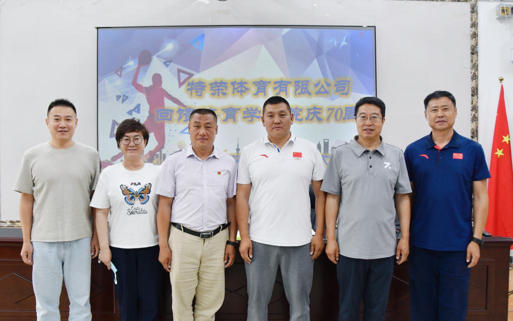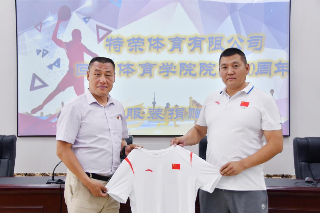 在内蒙古师范大学70周年校庆来临之际,乐鱼手机网页版登录入口2006级运动训练班学生、呼和浩特市荣特体育文化发展有限公司董事长兴安回到学校、不忘师恩,为全院教师赠送服装,祝母校生日快乐、桃李满天。