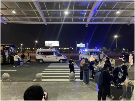 下了飞机,机场外早已安排了转运的大巴车和救护车,我们坐上返乡的大巴车,被安全的转移到隔离点。把一切安顿好以后早已饥肠辘辘,由于来的时候比较晚,早已经错过了隔离点的晚饭时间。这时我打开学校送的“返乡关怀礼包”,用开水泡了一碗方便面,吃着热腾腾的泡面,泪水在眼眶里不停地“打转”,上飞机的前一天学校给安排了饺子,这上车的饺子下车的面都是“内师大”给的,仪式感直接拉满,再次被内蒙古师范大学的贴心而感动到!
