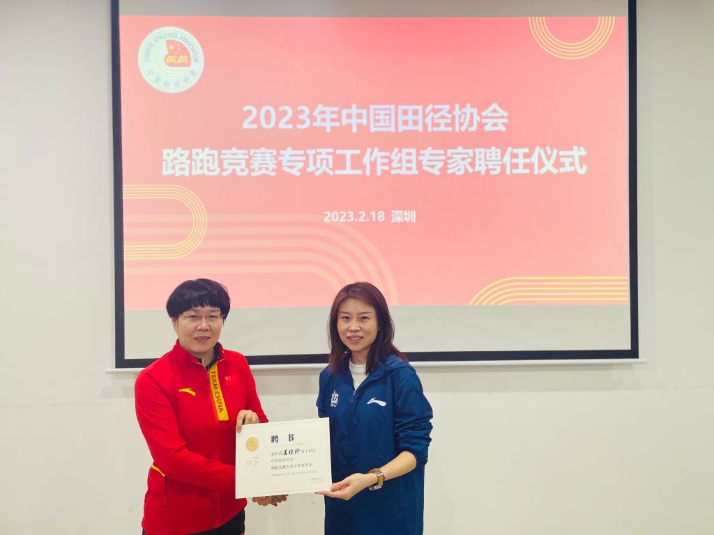 2023年2月18日,经中国田径协会批准,马拉松部在深圳召开专家组工作会议,会上举行路跑竞赛专项工作组专家聘任仪式,我院姜晓珍教授再次受聘为路跑竞赛专项工作组专家。