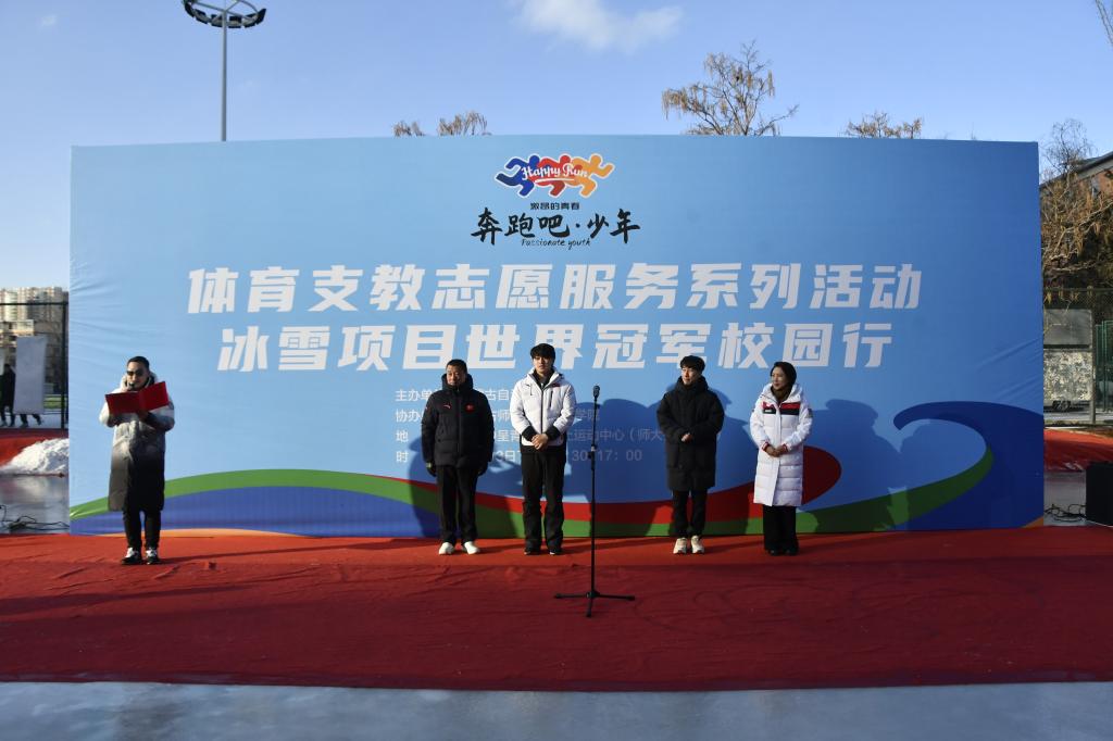 乐鱼(中国)党委书记韩武致辞,他表达对两位世界冠军到来的欢迎,他希望同学们通过此次与世界冠军“零距离”接触,让学生热爱冰雪项目,推动校园冰雪项目发展。